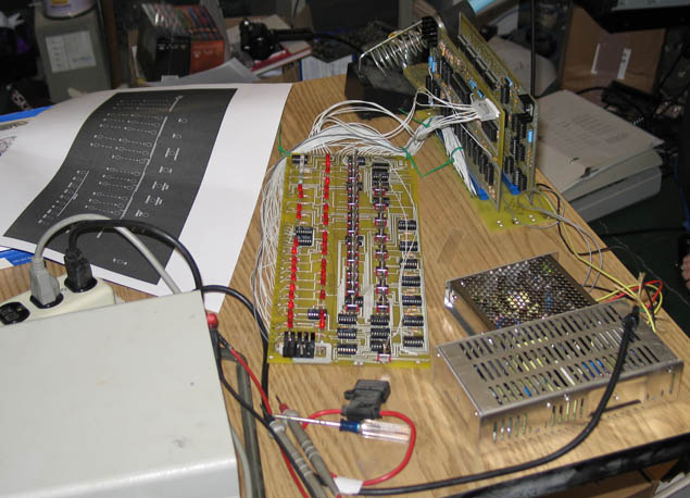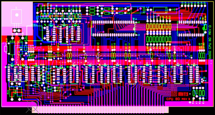 It all started about two years ago... I wanted to produce a "kit" that people could assemble. Something that you could spend a whole week after work assembling and after some debugging see your sweat and tears come to life. Why did I want to produce a kit like this? Because -I- wanted to build a kit like this myself! On and off I played with creating a kit of the Apple I computer. I spent some time with raw scans of the PCB trying to trace the artwork, but progress was very slow. Around December 23rd 2005, I was window shopping on e-bay when I came across an Apple I kit! My heart was crushed! Almost instantly, however, I forgot all about that and wanted to buy one. ;) ![]() So an Apple I kit is out of the question, it's been done! My next favorite computer is the Altair, and it is actually obtainable! I found an Altair for sale with quite a few extra memory and I/O boards. It was in fairly good condition and had a few manuals, so I was happy. The D0 switch didn't work so I couldn't actually toggle in any programs, and in fact I never fixed that switch before completely disassembling the entire computer! The best part about the Altair that I had just bought was that it had been used by ARP Instruments as part of an experimental computerized music synthesis project. Included with it was a bunch of documentation on synth control, some disks containing the code, and some custom interface cards. I love time capsules, but the ARP story is for another day... ![]() The ARP Instruments Altair - its alive...sort of... I began the project not wanting to "destroy" my Altair. I had after all paid a lot of money for it! Todd Fischer replied to me in an e-mail "One flag comes up that suggests that you're not as committed to this idea as you seem. When you write "I'm not interested in the project enough to buy a perfectly working Altair just to desolder all of the parts!", it tells me that you are limited in your intent.". I stuck to the idea of not desoldering the Altair for a good 5 months! In the mean time I had sent away some pictures of the CPU board to several companies that offered "Raw PCB to Gerber" conversion. That is where a raw PCB is placed on a calibrated high resolution scanner. With the aide of a human, the computer recreates the copper, drill, silkscreen, and solder mask (if present) Gerber cad files. I received responses that ranged from $200 to $1300. Since that was JUST for the CPU card and I had quite a few that needed to be reproduced, I decided to try "scanning" myself. I attempted to do this quite a few times using different software packages. Just to show you how hard I tried to avoid disassembling my original Altair boards... Since I work for a company that produces digital x-ray equipment, it was easy to get x-rays of the MITS boards. I actually scanned the bottom of the board, made that layer of the board translucent, and then overlayed the x-ray. This looked pretty good, but it is a LOT of work to "scan" a board by "tracing" the traces! It was pretty neat being able to see the traces that were underneath the ICs...even the traces under the dies! Quality is important to me, and I wanted boards that were as close to the original MITS boards as possible. I finally decided to turn to the PCB scanning outfits... ![]() The scanned/x-ray composite Altair CPU board. This is a scaled version. The file I was using was 300dpi. In the end, I decided to use Mile High Testing Services to scan my boards. They were second to the cheapest and their web page made me feel confident. (If you contact them, tell Steven that Grant says "Hi"!) This involved me desoldering every single part off of the boards and then cleaning off all the solder/flux. See a pattern here? Someone gives me good advice and I try to take a different direction. ;) Advice from Steve Gabaly, creator of the Apple 1 kit, went like this "...if I were going to make an Altair I'd have the boards reproduced by a PCB scanning service and get a perfect set of boards in a few weeks with no hassle..." It wasn't QUITE "no hassle" because of the very poor quality silkscreen on the original MITS boards. After spending an average of 10 hours on each PCB cleaning up and restoring the silkscreen, my cad screen looked something like this: ![]() The Altair CPU board Gerber file including my solder mask layer, the fonts don't seem to render very well on screen... I went through each PCB with a fine tooth comb. I repositioned all of the silkscreen elements to where I thought the original intent would have been. I also created a solder mask for the PCBs to improve appearance and to make it easier to assemble. Here are some sample before and after pictures of the 1k memory card. These don't show the worst cases, but are still good comparisons. ![]() MITS board on the left and reproduction board on the right The MITS silkscreen was used where ever possible. Sometimes I had to copy and paste letters/numbers from other parts of the board. Quite a few times the first letter was on top of a pad, etc. I also shrunk the symbols so they would fit between the pads. The arrows now point to pin one instead of being on top of pin 2, etc... Before I found Imagineering Inc (they have inexpensive boards!) I avoided getting PCBs with a solder mask/silkscreen manufactured until the design was proven. There is the chance that the scan could have an error. So a prototype Altair was made using copper only boards. Here are a few pictures of the prototype: ![]() The prototype 1k card only had one problem. One of the capacitor pads was placed too close to an I/O line. Some unremoved flux made it look like the gap was supposed to be bridged when the board was scanned. ![]() The prototype CPU card had no problems. The only "problems" that it had was me. Since it didn't have a silkscreen I accidentally placed a jumper wire in the wrong hole! After 5 hours of debugging I found the problem. :) ![]() This is the first time that the prototype was powered up. There was one pr